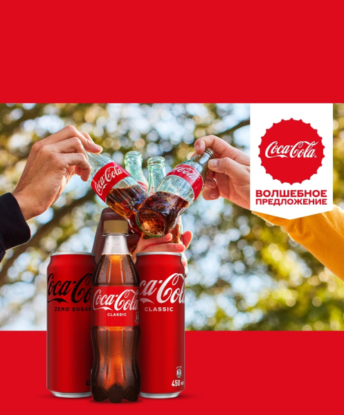- Приобрести безалкогольный напиток COCA-COLA CLASSIC, COCA-COLA ZERO SUGAR, FANTA АПЕЛЬСИН, SPRITE в специальной упаковке.